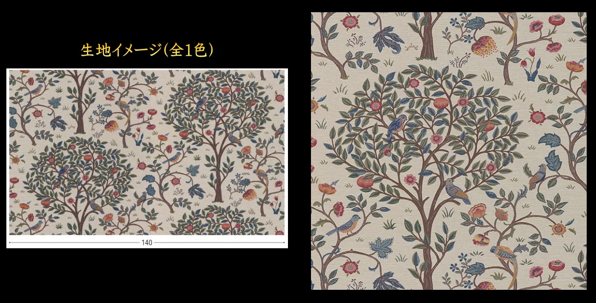 2017年に、「モリスデザインスタジオ」のライセンスを持つ川島織物セルコンがプロデュースした織物版は、同じ色調の中でも柄がより引き立つよう、ゴブラン織りの手法を参考にした立体デザインにこだわった織物版として発表したファブリックで、今回の納品事例は織物(MM3125)の方です。