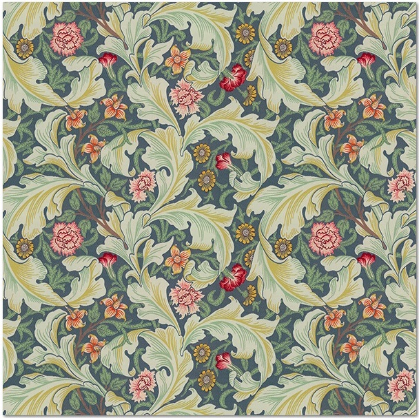 『レスター(Leicester)』は、1912年にウィリアム・モリスの一番弟子である、ジョン・ヘンリー・ダールが、木版壁紙としてデザインした作品で、現在も紙製の壁紙は英国のサンダーソン(Morris.Co)より入手可能です。