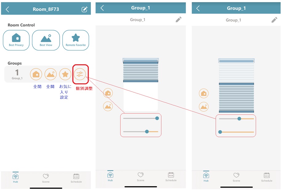 昇降操作は都度の調整モードに加え、前閉(Best Privacy)、全開(Best View)、リモコンに登録している「お気に入り設定★(Remote Favorito)」のポジションをワンタッチ操作で行うことができます。