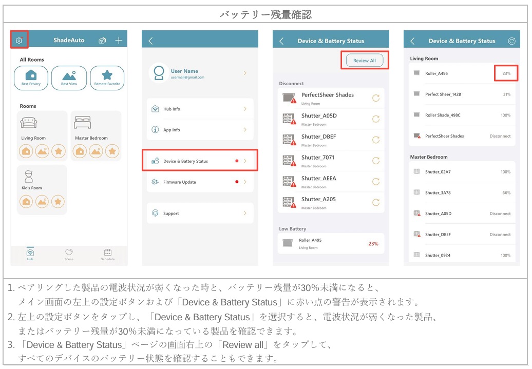その他、充電式「パワーロッドモデル」を使用している場合は、アプリ内で登録製品の残量確認が行えるほか、バッテリー残量が30%未満になった際に表示されるお知らせ機能もあり、充電のタイミングを効率よく知ることができます。