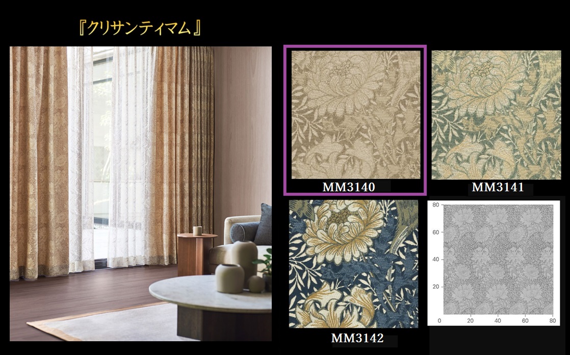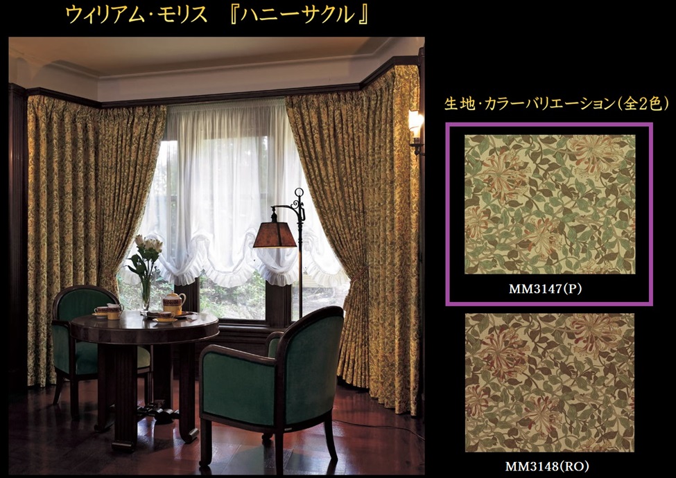 「ハニーサックル」と「クリサンティマム」。ウィリアム・モリスのスタイルカーテン。