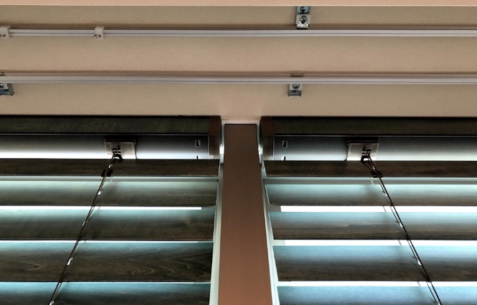 カーテンボックス内の既存レールは、ウッドブラインドの設置に支障がなかったため残し、その後方のクリアランス部分にウッドブラインドを設置することになりました。