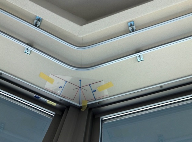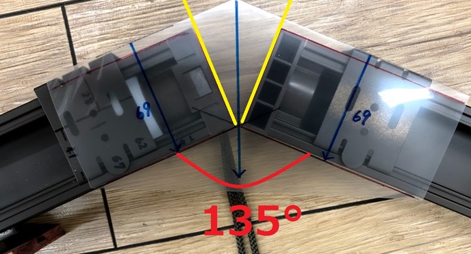 135度の角度を持つコーナー部分は、ブラインドの手前側が狭く、後方が広くなりますので、その特性を考慮した適正サイズを調べます。