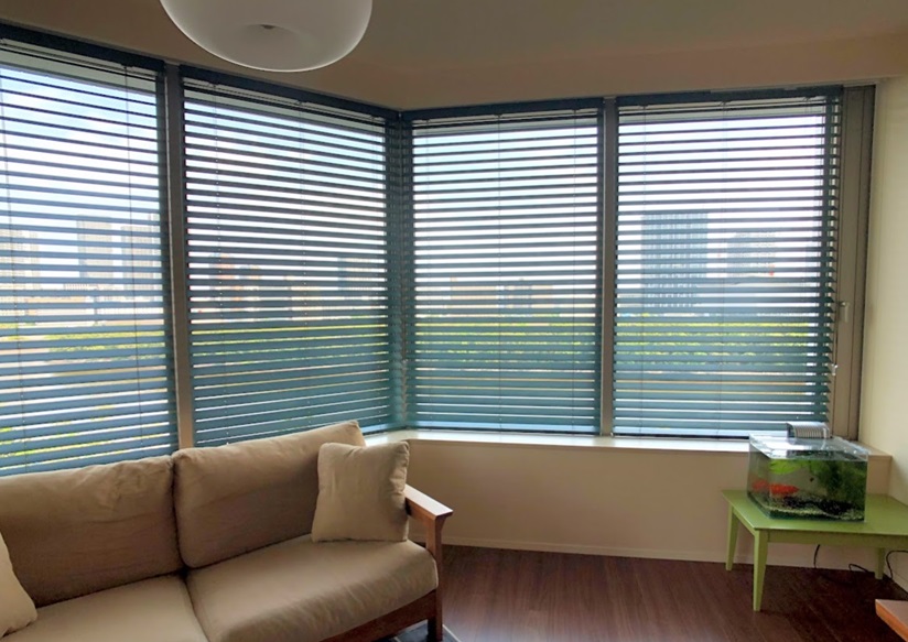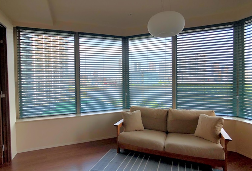 ベイウィンドウ(出窓)のウッドブラインド実例|高層マンションでの納まり